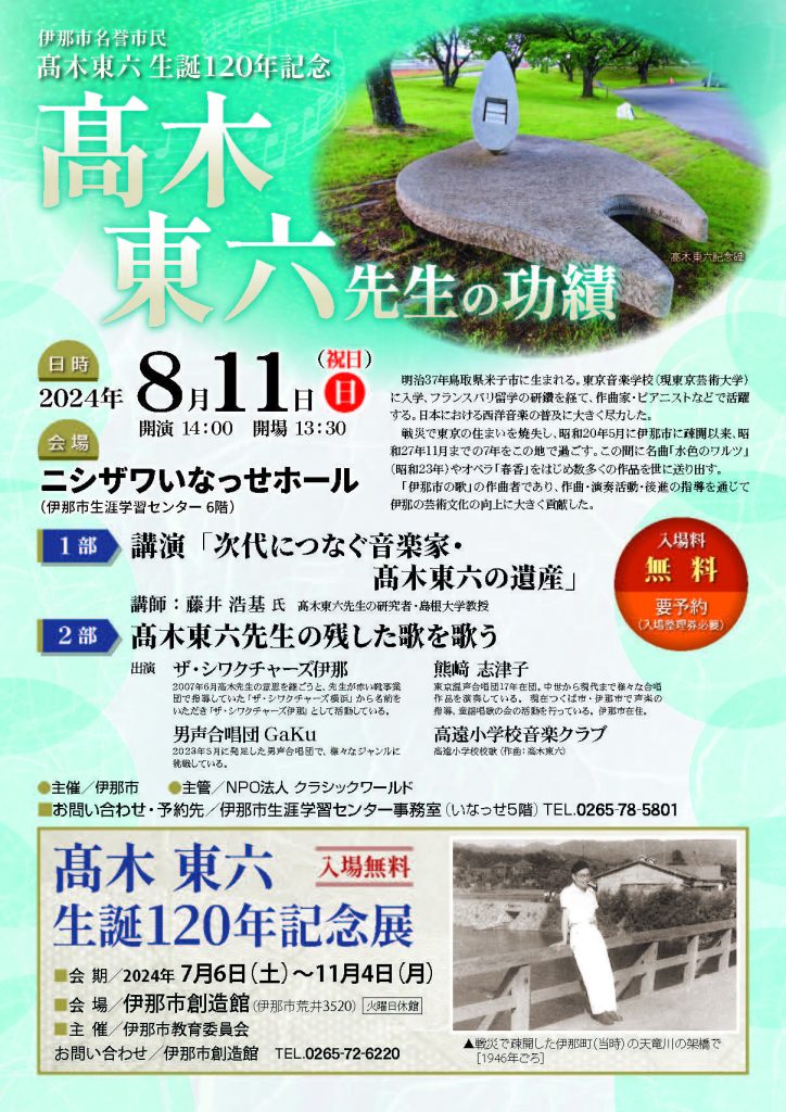 [2024.08.11:終了] ~髙木東六生誕120年記念~ 髙木東六先生の功績