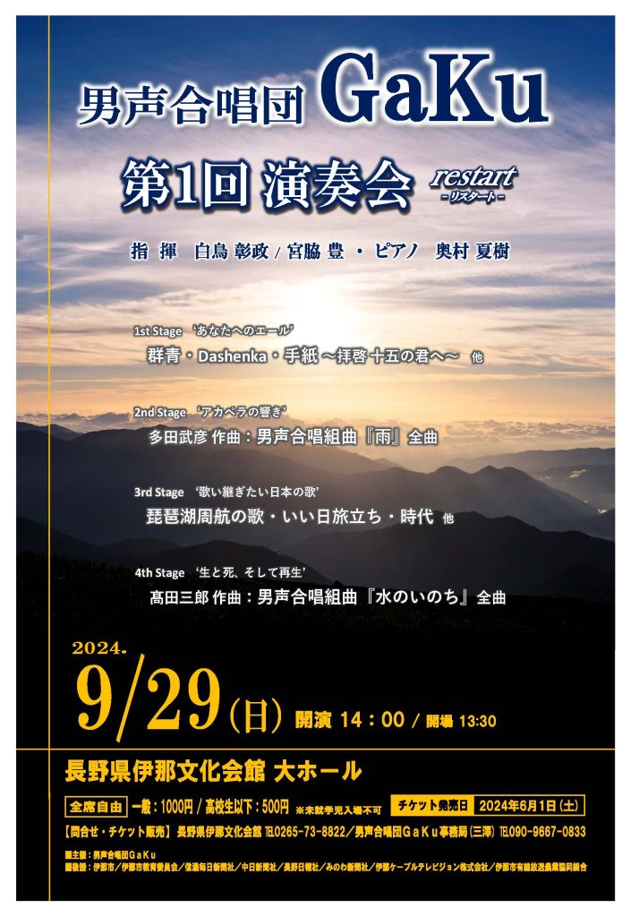 [2024.09.29:終了] 男声合唱団 GaKu 第1回演奏会  restart -リスタート-
