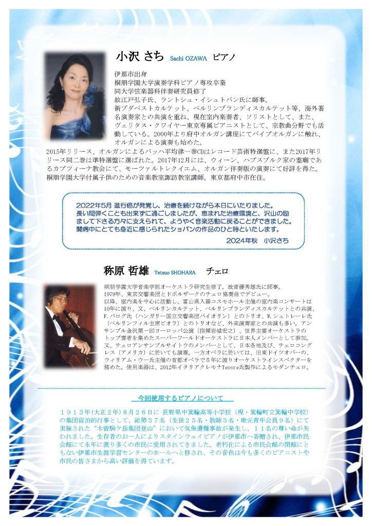 [2025.1.19:終了] New Year Concert 2025 小沢さち ピアノリサイタル ~再び奏する幸せとともに~