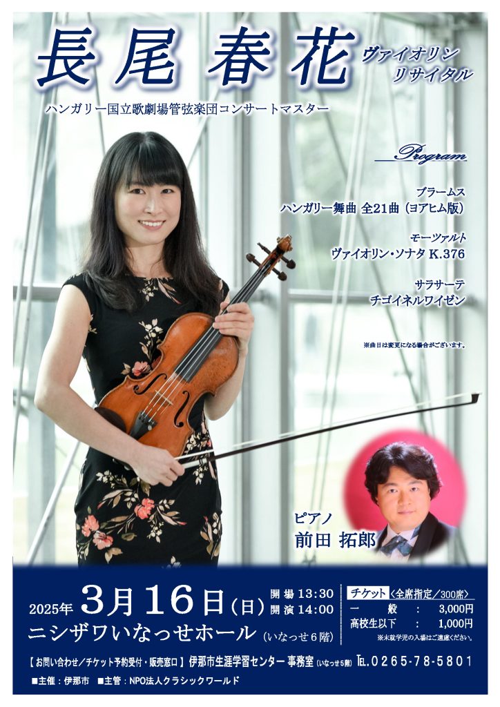 [2025.3.16:終了] 長尾春花 ヴァイオリンリサイタル