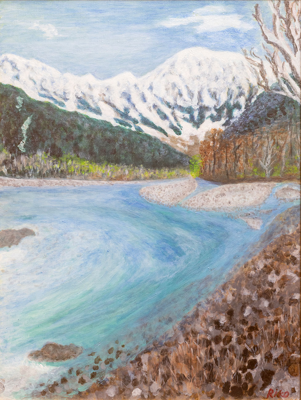 思いから、伊那文化会館就任時の学芸員に指導を受け70才から油絵を始めました。
