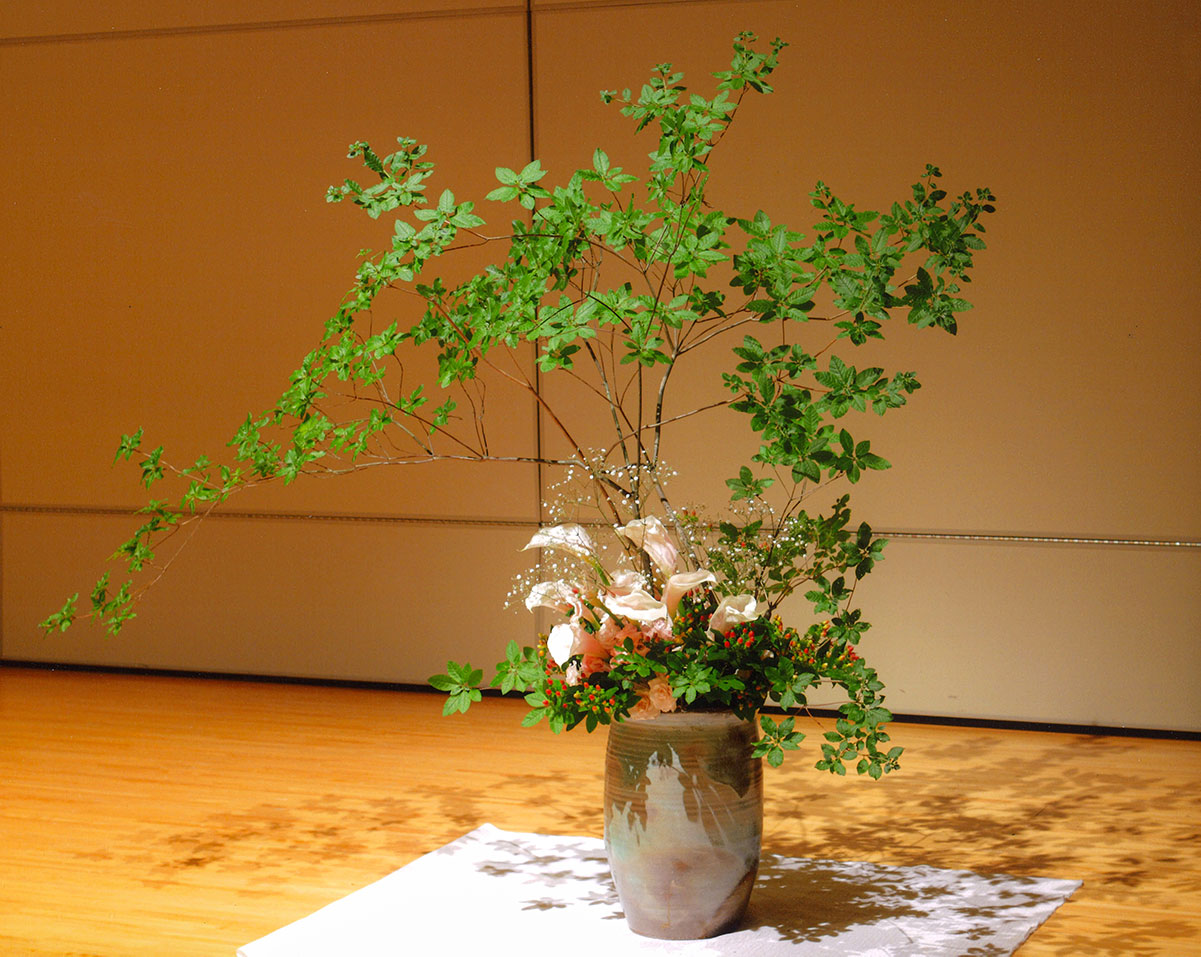 地元での就職活動を進める中、ふと出会った看板「生け花教室古流松応会」、自然界を表現したいと考えていたのが生け花への始まりです。